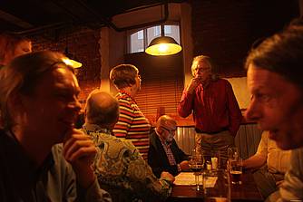 We continued the party with drinks at Plevna. Here Minna, Nikolay and Pasi are at the front, Kirsti and Jukka at the back.